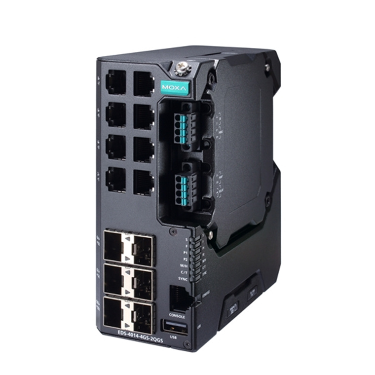 The EDS-4014 Series is a range of 14-port managed Fast Ethernet switches with four 1 Gbps and two 2.5 Gbps fiber-optic ports. Redundant Ethernet technologies such as Turbo Ring, Turbo Chain, and RSTP/STP increase the reliability of your system and improve the availability of your network backbone. The EDS-4014 Series is designed specifically for demanding applications such as video and process monitoring, ITS, and DCS systems, all of which can benefit from a scalable backbone. The EDS-4014 Series is compliant with the IEC 62443-4-2 and IEC 62443-4-1 Industrial Cybersecurity certifications, which cover both product security and secure development life-cycle requirements, helping customers meet the compliance requirements of secure industrial network design.