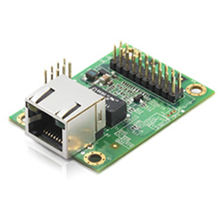 Device server module for RS-422/485 devices, supports 10/100BaseT(x) with 5-pin Ethernet pin header, -40 to 75°C operating temperature