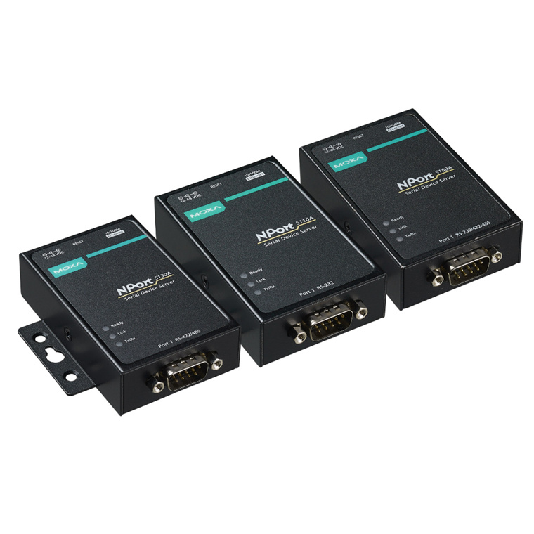 The NPort® 5100A device servers are designed to make serial devices network-ready in an instant and give your PC software direct access to serial devices from anywhere on the network. The NPort® 5100A device servers are ultra-lean, ruggedized, and user-friendly, making simple and reliable serial-to-Ethernet solutions possible.