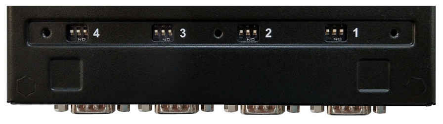 The NPort 5400 Series provides adjustable termination and pull high/low resistors for RS-485 applications. In some critical environments, termination resistors may be needed to prevent the reflection of serial signals, and the pull high/low resistors may need adjusting to maintain the integrity of the electrical signal. Since no set of resistor values is universally compatible with all environments, the NPort® 5400 has four sets of DIP switches on the bottom panel to set the termination and pull high/low resistor values.