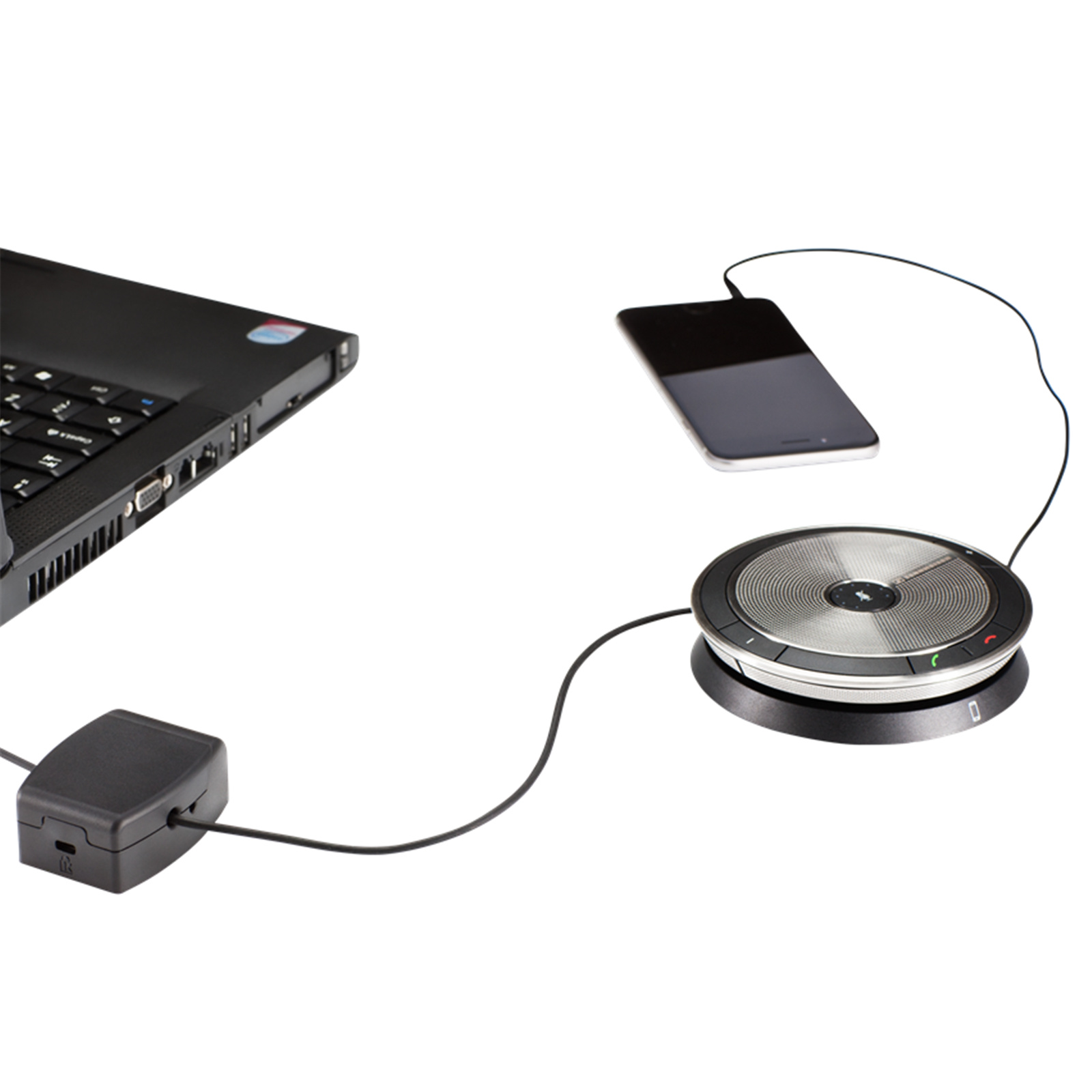 Its small, discrete design takes up very little space on the table and it is still possible to move a speakerphone freely around a meeting room table or desk while secured. It can secure two devices simultaneously, to provide a secure and practical solution for meeting rooms and desks.