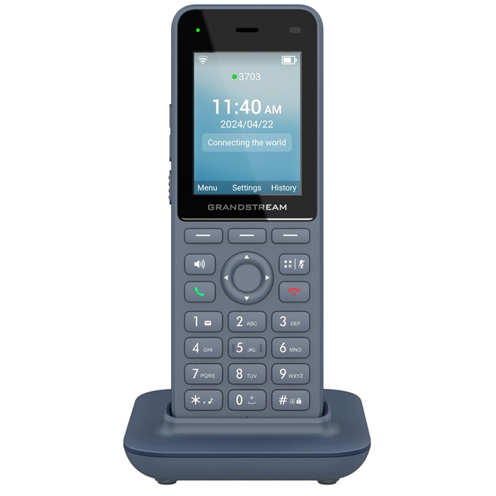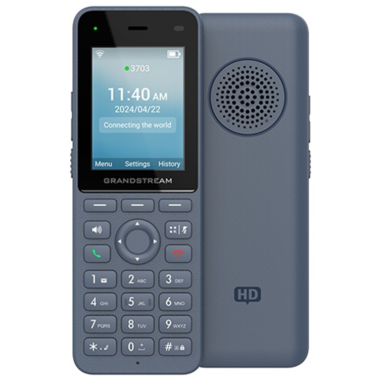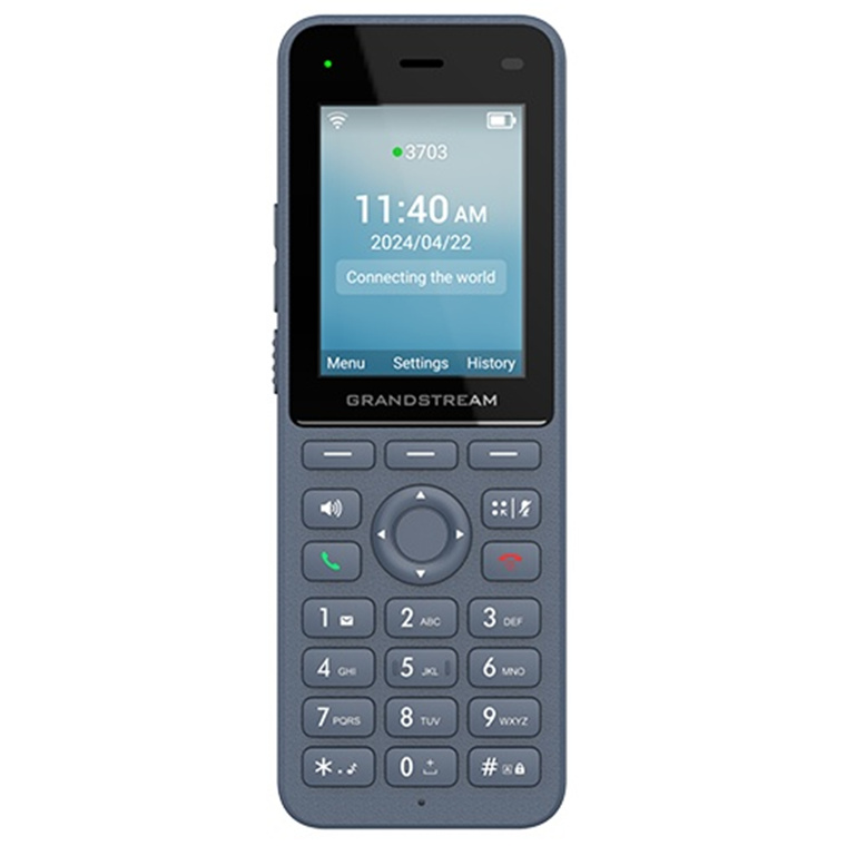 Grandstream WP826 Cordless Wi-Fi IP Phone with Integrated Dual-Band Wi-Fi 6 802.11a/b/g/n/ac/ax and 12-hour talk time. The WP826 is a cordless Wi-Fi IP phone suitable for many enterprise and vertical market applications, including offices, retail, logistics, healthcare, security, and more. This high-end cordless Wi-Fi phone is equipped with integrated dual band Wi-Fi 6, an advanced antenna design, roaming support, 4-way voice conferencing, and support for the Opus HD voice codec.