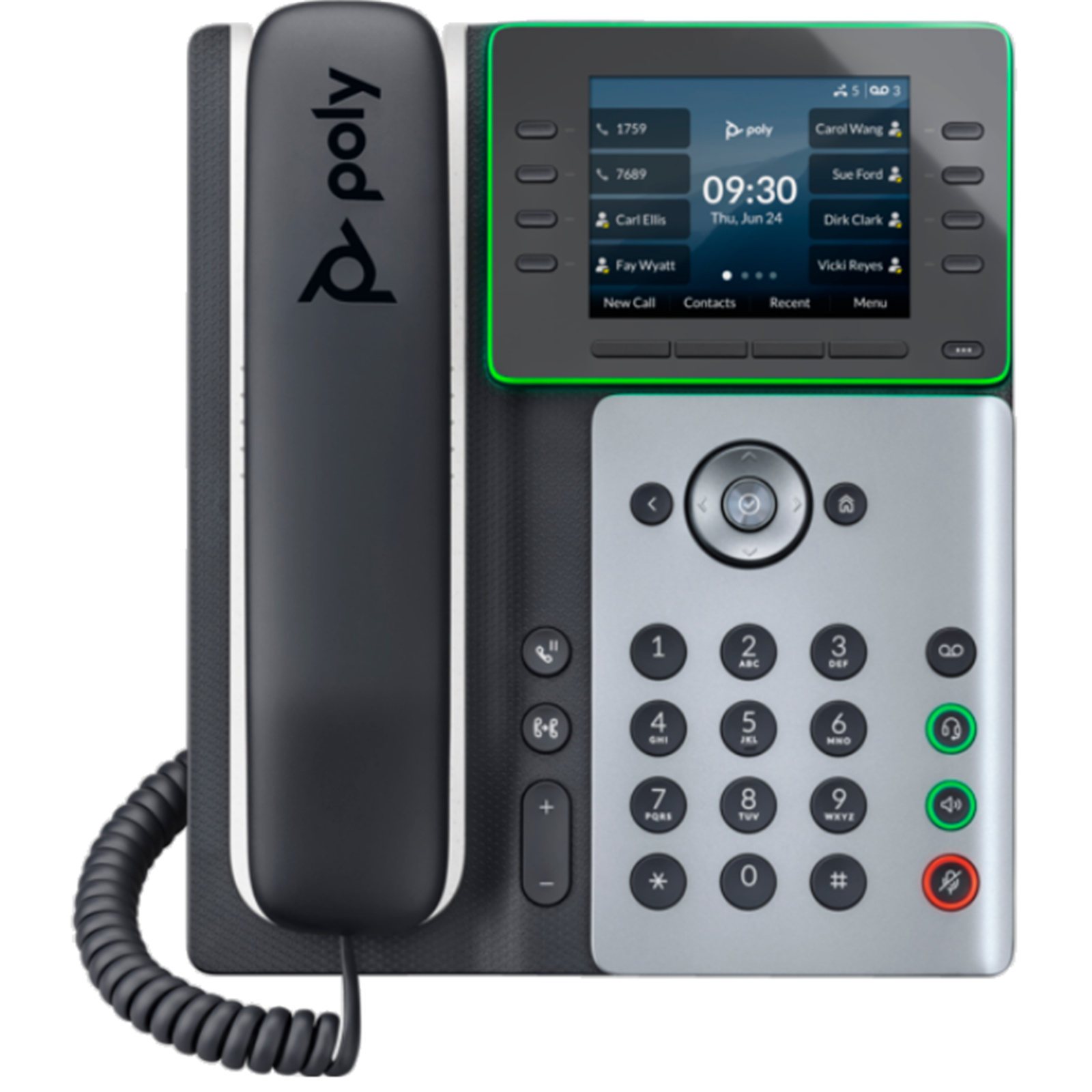 Get fast access to features via the 3.5" color display with a surround light status indicator and soft keys under the display. 8-line keys support up to 32 lines and contacts. A new pagination key brings additional lines/contacts into view.