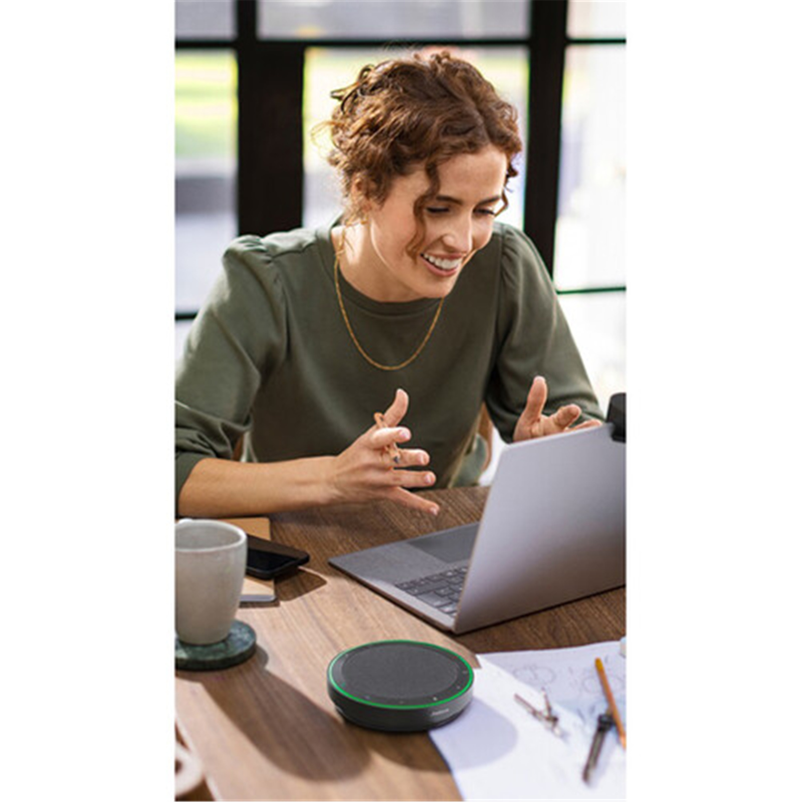 Wherever you put it-a table, a desk, a floor-the Speak2 75 will effortlessly field sound from all directions, harnessing every change in voice tone, so every nuance is picked up, while innovative noise reduction technology deftly bats away distracting background bother like tappy keyboards and extra-crunchy chips.