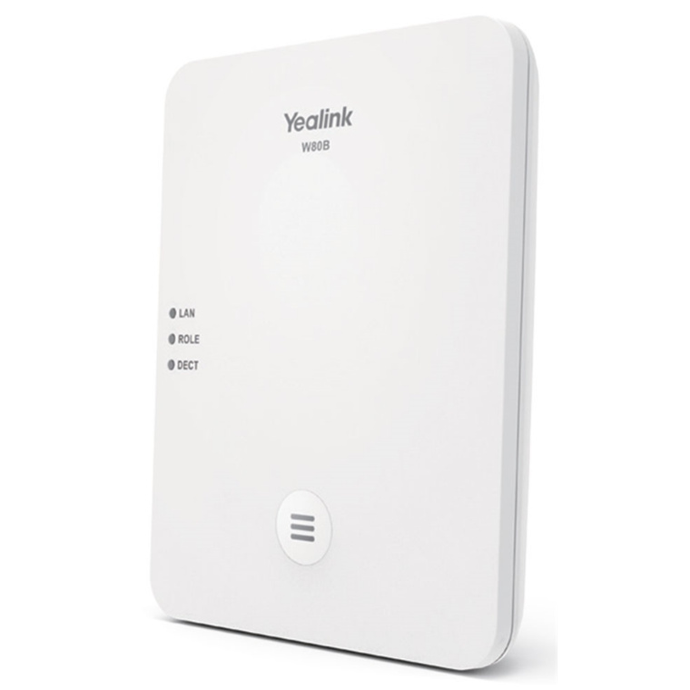 Yealink W80B is an IP base station for use as part of a large, multi-cell wireless IP phone system. The base station communicates with Yealink W53H or W56H Wireless Handsets using DECT, which supports wideband HD audio, encrypts communications, and reduces spectrum density in offices with many Wi-Fi and Bluetooth devices. W80B is a scalable solution for increasing mobility in the office and for improving coverage in larger spaces like warehouses, retail stores, and hangars. When set up as part of a multi-cell system, W80B provides seamless transfer between base stations, which for the user equals more room to roam without worrying about the call dropping.