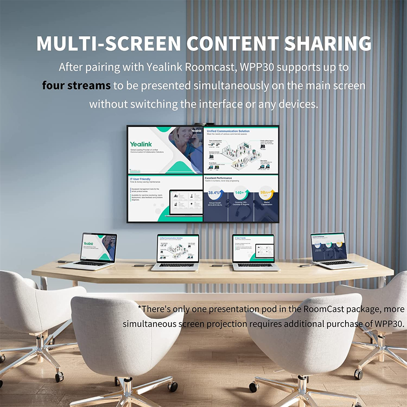 Yealink WPP30 Wireless Presenter - 4K Pod (WPP30) - 4K Wireless Presentation Pod for Every Work Space