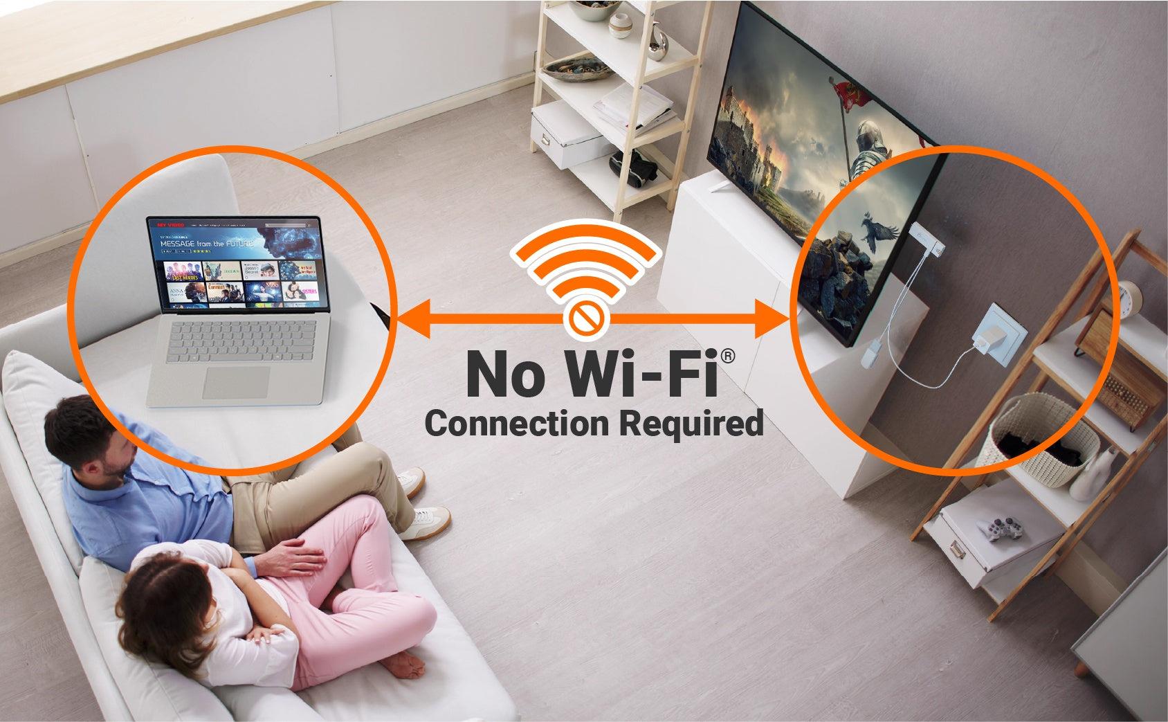 Wirelessly share content from your compatible device without connecting the ScreenCast to the internet.