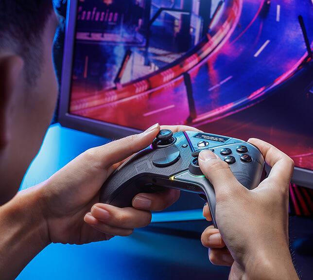 The ROG Raikiri Pro PC Controller features a built-in OLED display, tri-mode connectivity, four rear buttons, selectable step triggers, an ESS DAC, plus adjustable joystick sensitivity and response curves. The ROG Raikiri Pro is ideal for PC gaming and next-gen Xbox consoles.
