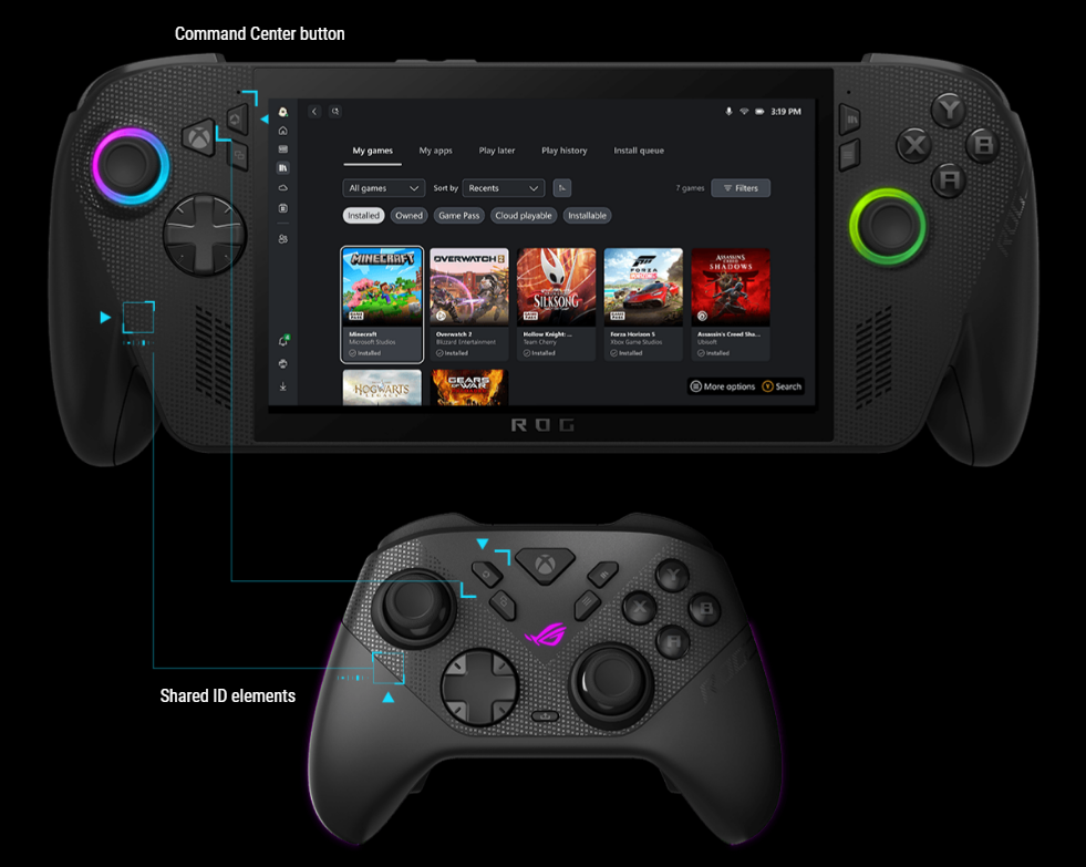 The ROG Raikiri II Xbox Wireless includes the essential Command Center and Library buttons. Additionally, the controller features signature design elements from the ROG Xbox Ally handheld such as the textured surface for a unified and familiar user experience.