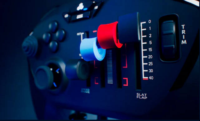 Tactile levers for flaps, parking brake, and gear - direct access to key flight-sim controls.