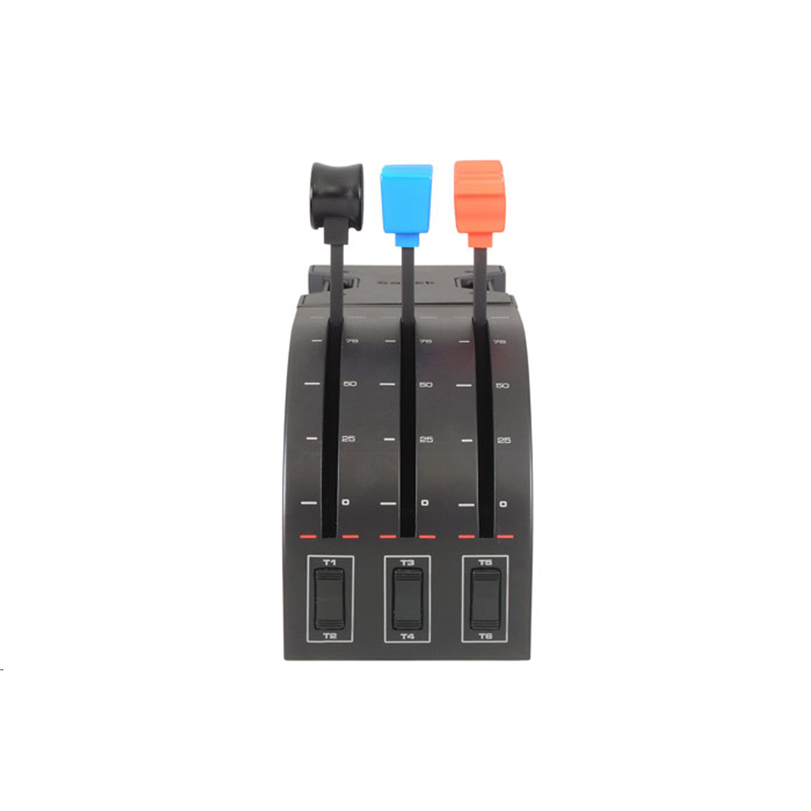 If you like to fly multi-engine aircraft, most flight sim controllers leave you a couple throttles short. The Pro Flight Throttle Quadrant is the solution, providing three extra levers to control even more engines, flaps, gear, spoilers or any other programmable axes you want to assign. In addition, three momentary, two-way toggle switches on the Quadrant's base help create a total of nine programmable commands. A perfect complement to the Throttle Quadrant included in the Saitek Pro Flight Yoke, you can easily add modular controls to your simulator cockpit. Fly with Saitek, the market leader in high-performance flight simulation hardware.