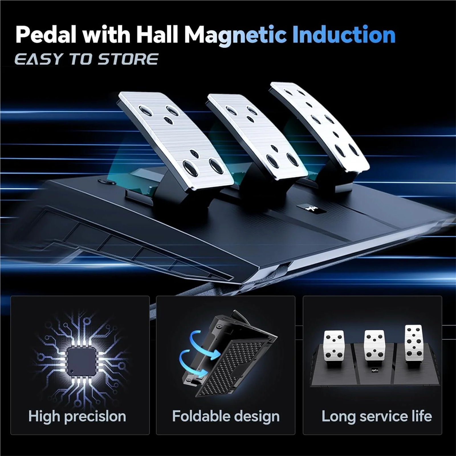 Easily switch between 270° and 900° rotation angles with a physical button. At the 900° setting,the wheel can turn two and a half times, matching the rotation of a real car's steering wheel.