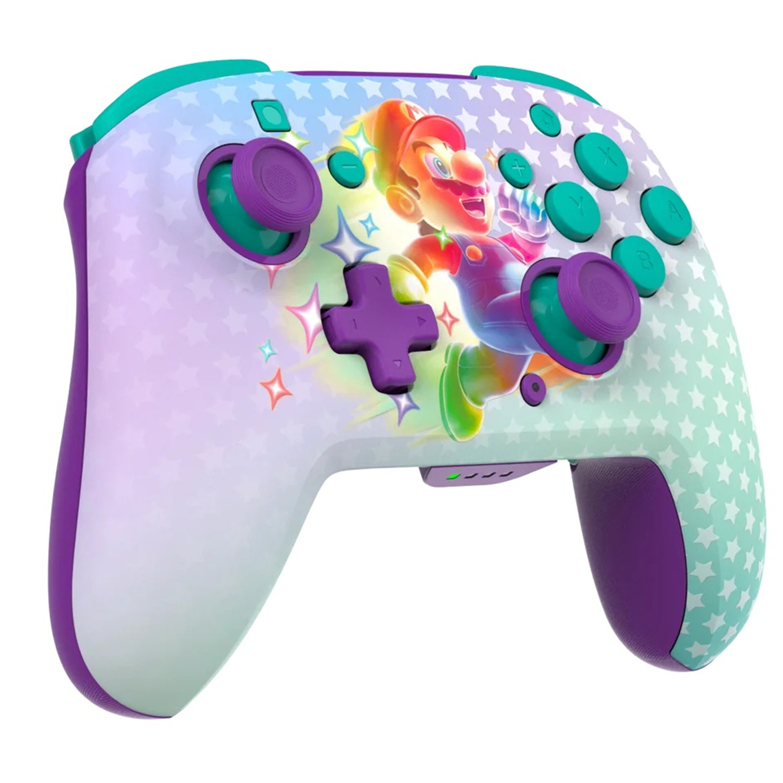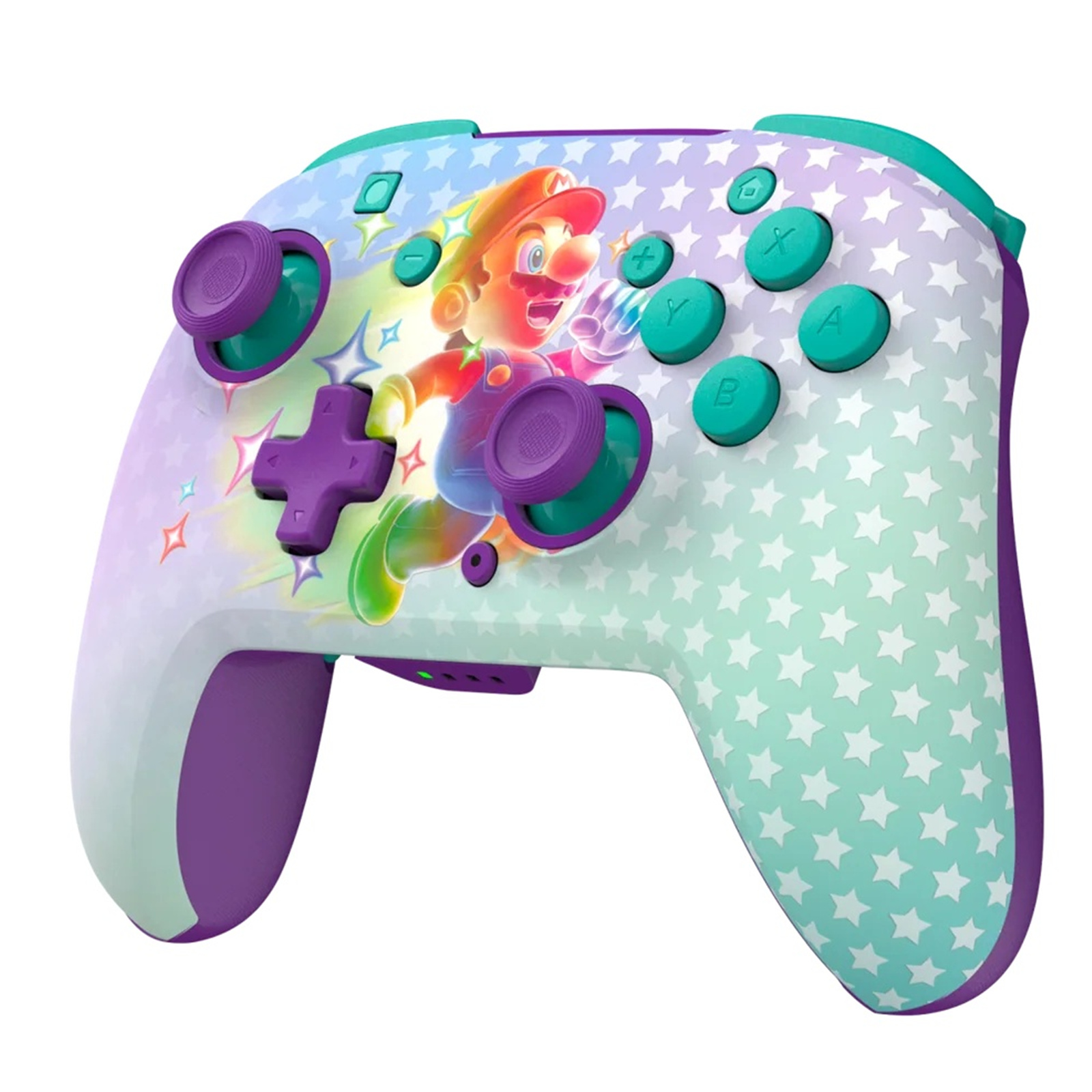 The Invincible Mario-themed Rematch Wireless Controller brings a burst of retro charm for gaming on Nintendo Switch™, Nintendo Switch™ Lite, & Nintendo Switch™ - OLED Model. This controller also works with Nintendo Switch™ 2 - C Button not available. Brighten up the darkest of gaming rooms with a glow-in-the-dark design after exposure to UV light. For long gaming sessions, you will appreciate the rechargeable battery providing up to 40 hours of play and up to 30-foot wireless range so you can play comfortably from anywhere in the room. Play with natural precision using built-in motion controls in games like Mario Kart™ 8, and new games like Mario Kart™ World and Donkey Kong™ Bananza. With bold style, responsive features, and a glow-in-the-dark design, the officially licensed Rematch Wireless Controller for Nintendo® is ready for your next adventure.