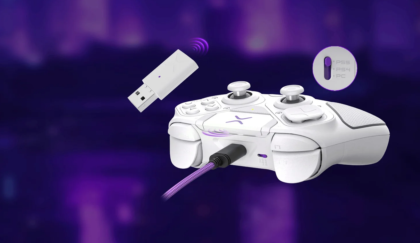 Connect via low-latency wireless or the 3m braided USB-C for tourna- ment play. Easily jump from PS5®, PS4®, & PC with the mode switch button.