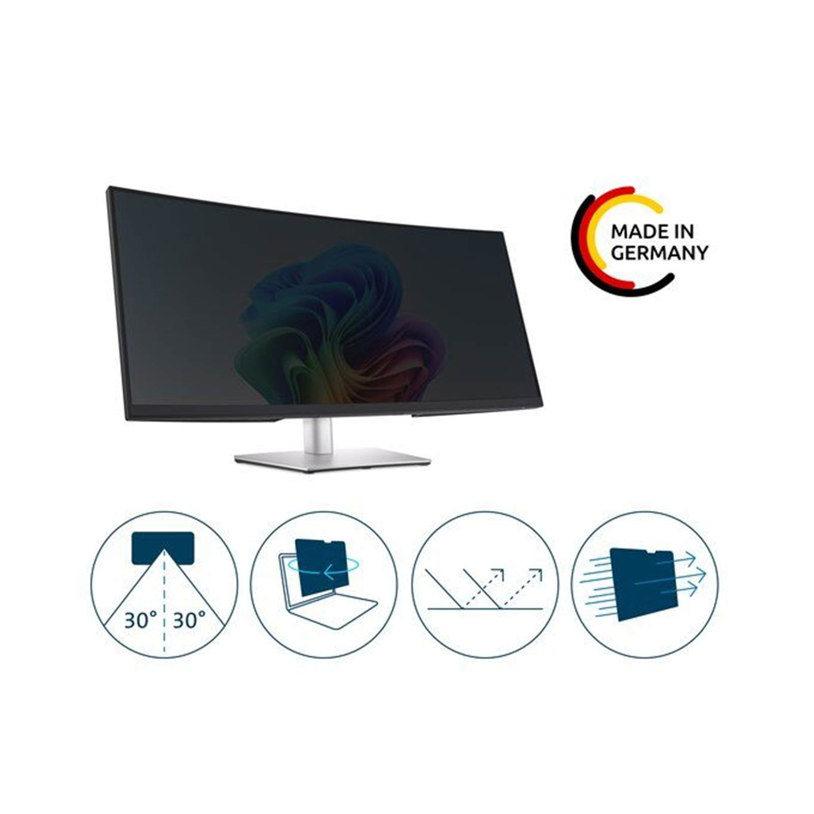Limits viewing angle to 30° and keeps your sensitive information safe Blue Light Reduction: reduces detrimental blue light by up to 42%, easing eye strain and promoting natural sleep Innovative anti-glare coating reduces reflection and improves clarity Anti-fingerprint coating keeps your screen clean and free of greasy marks Edge to edge alignment for perfect fit with your screen Suitable for 34" curved monitors 2-way adhesive Visit https://www.kensington.com/privacy-selector