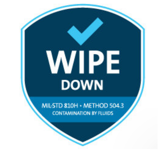 Meets wipe down (MIL-STD-810H Method 504.3 Contamination by Fluids) testing standards.