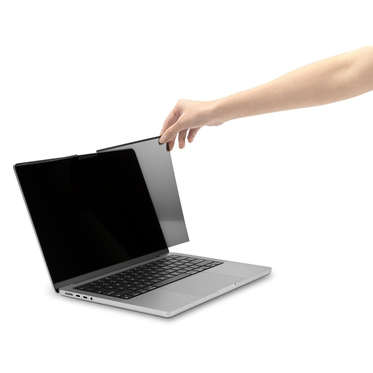 Privacy screen conveniently and easily attaches to - and detaches from - the MacBook Pro frame with magnets. No inconvenient and potentially damaging adhesives required.