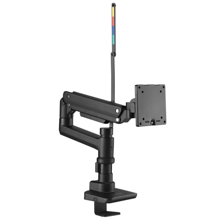 Easily attaching to desks and tables, the topside, pre-installed C-clamp mount supports a hassle-free installation and provides stable monitor support. The quick-release VESA® plate (75, 100, 200, and 300; 1:1 mounting) simplifies monitor attachment and detachment.