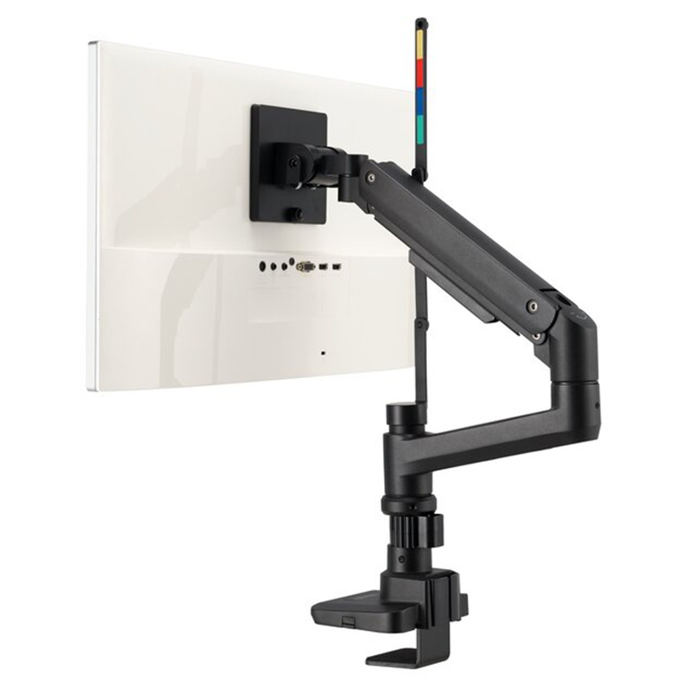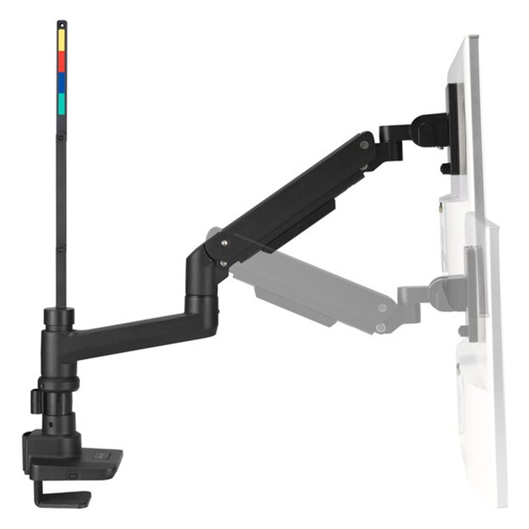 Many professionals struggle with large monitors cluttering their desktops. Some hesitate to elevate their monitors due to the high cost, complexity, or compatibility restraints of traditional monitor mounts, while others struggle with improper placement because their current monitor arm is too cumbersome to adjust. Ideal for heavier, large format monitors, the SmartFit™ Premium Heavy Duty Single Monitor Arm enhances workspace organization and offers a hassle-free experience. A color-coded fitting chart helps users quickly set the right height for proper ergonomic viewing. Whether users need to raise their display to reduce neck strain, tilt for better visibility, or reorient the layout for viewing documents or spreadsheets, the gas-spring arm makes it easy to adapt monitor positioning with less physical exertion. And, installation is a breeze with topside, pre-installed C-clamp mounting and a quick-release monitor mounting plate.