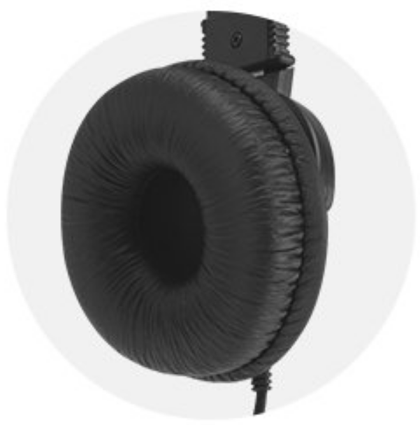 Designed to provide a comfortable fit for all ages, the adjustable headband is padded and the foam earpads are wrapped in a soft leatherette cover.