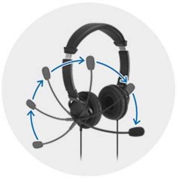 The microphone rotates up to 270°, allowing you to wear it on the left or right side. The volume and mute controls are integrated into the cord for quick and easy access.