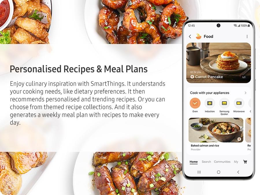 Make your kitchen experience more joyful. SmartThings Cooking* saves time and minimizes the burden of cooking. By understanding your needs it provides personalised recipes** and a weekly meal plan. It also lets you monitor the cooktop's settings***.