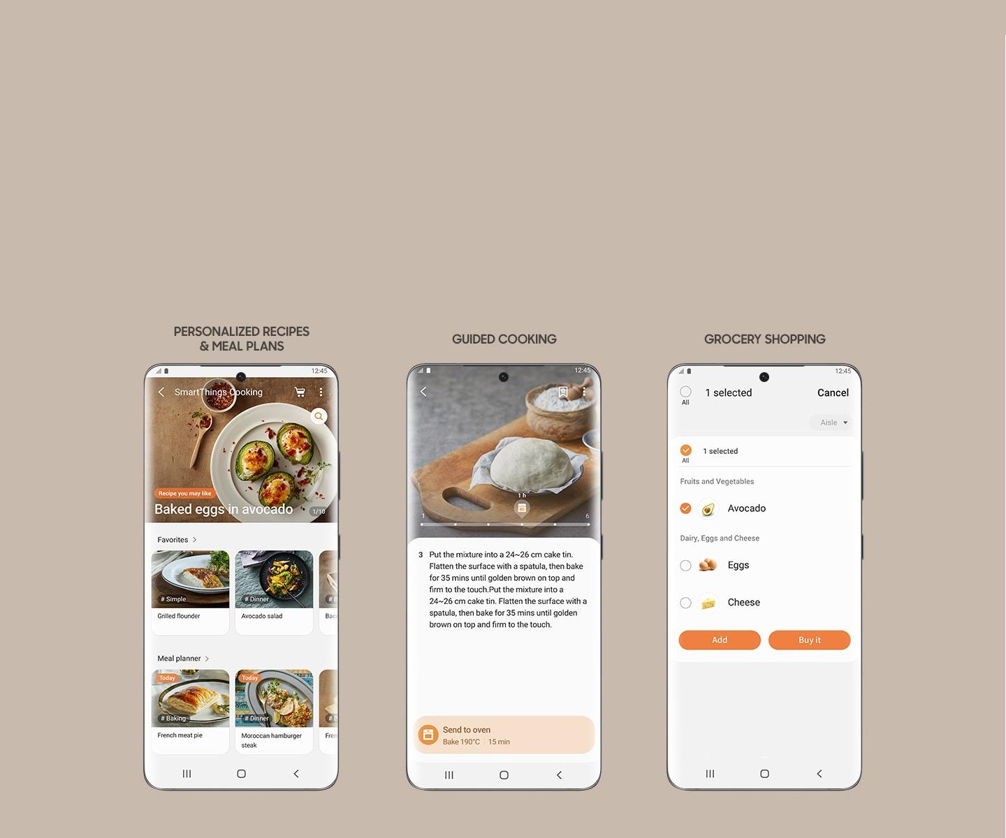 Make your kitchen experience more joyful. SmartThings Cooking[1] saves time and minimises the burden of cooking. By understanding your needs it recommends personalised recipes[2] and creates a weekly meal plan.