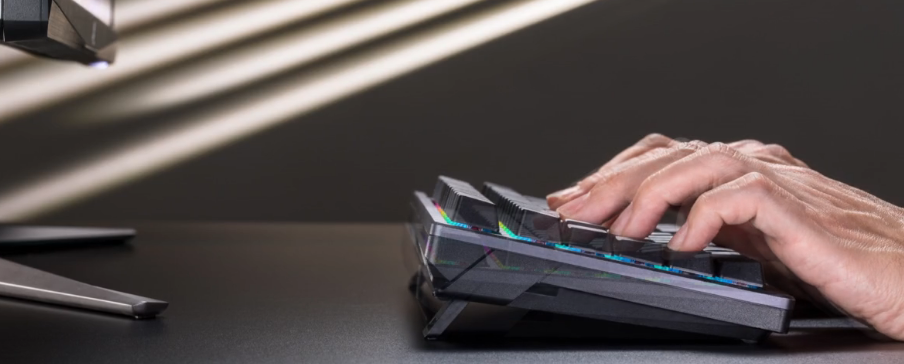 ROG PBT doubleshot keycaps provide a unique and premium feel, as well as offer long-lasting durability. Key design has been optimized with mid-height keycaps (similar to Cherry profile keycaps) and a shorter stem to reduce key wobble, and provide a more comfortable user experience.