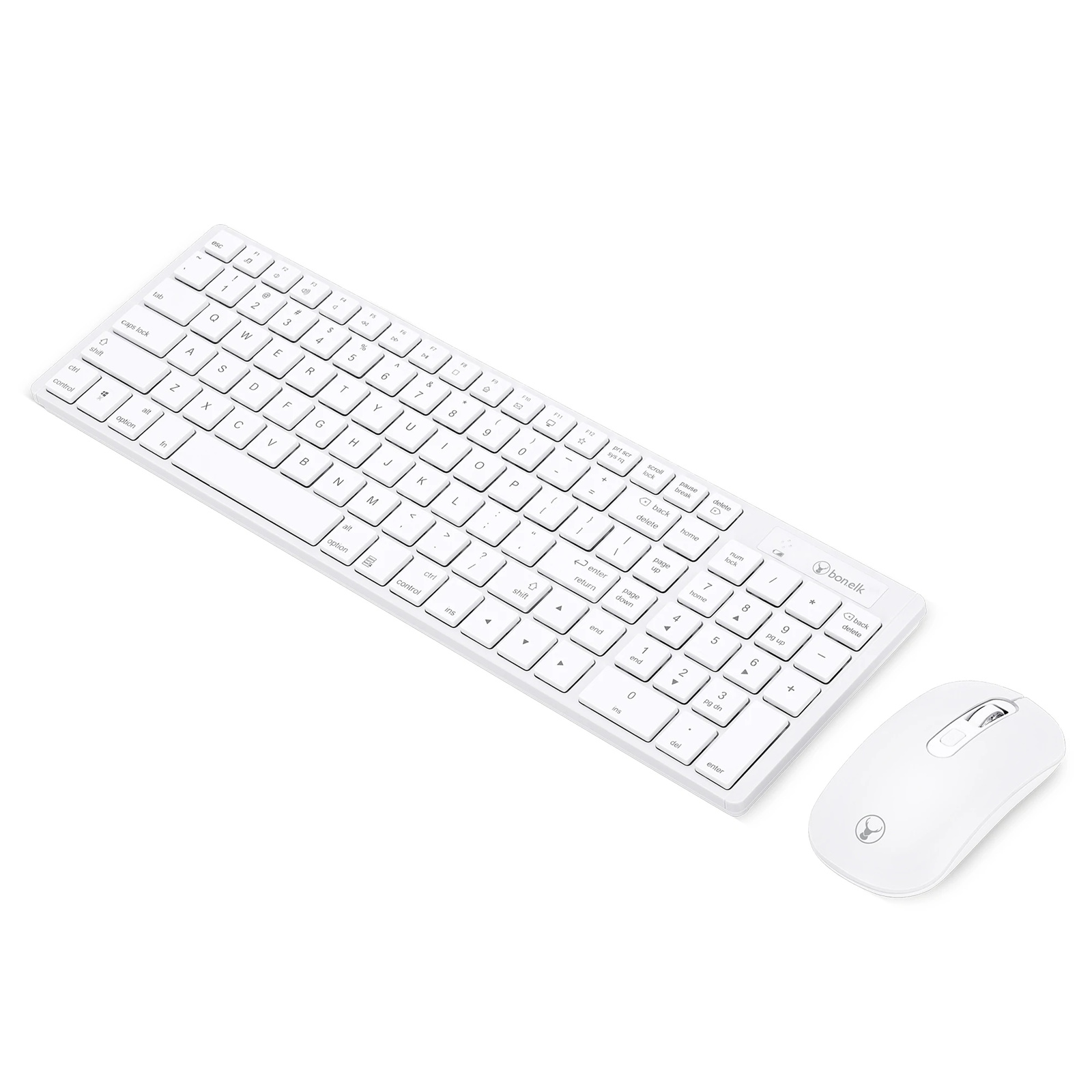 Bonelk KM-322 Wireless Keyboard & Mouse Combo for PC and Mac - White Slim