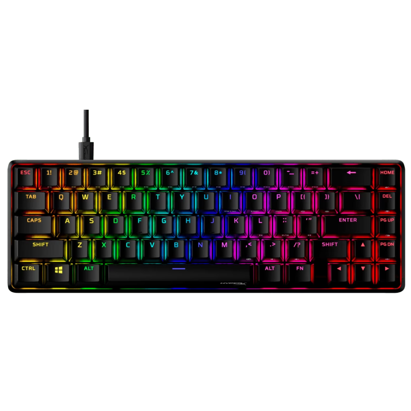 The HyperX Alloy Origins 65 is a balanced keyboard which blends compactness and functionality, but compromises nothing. A 65% form factor makes it more compact than a tenkeyless keyboard, while still offering arrow keys. With a durable, full aluminum body, and balanced HyperX switches rated to withstand 80 million keypresses, it's as reliable as it is compact. The stock double shot PBT keycaps have the keys' secondary functions printed on them so you can quickly locate any additional functionality you need. Let your style shine bright with the HyperX switches' exposed LED design, and stunning lighting effects. Further customize your keyboard with macros, personalized lighting profiles, and more with HyperX NGENUITY software.