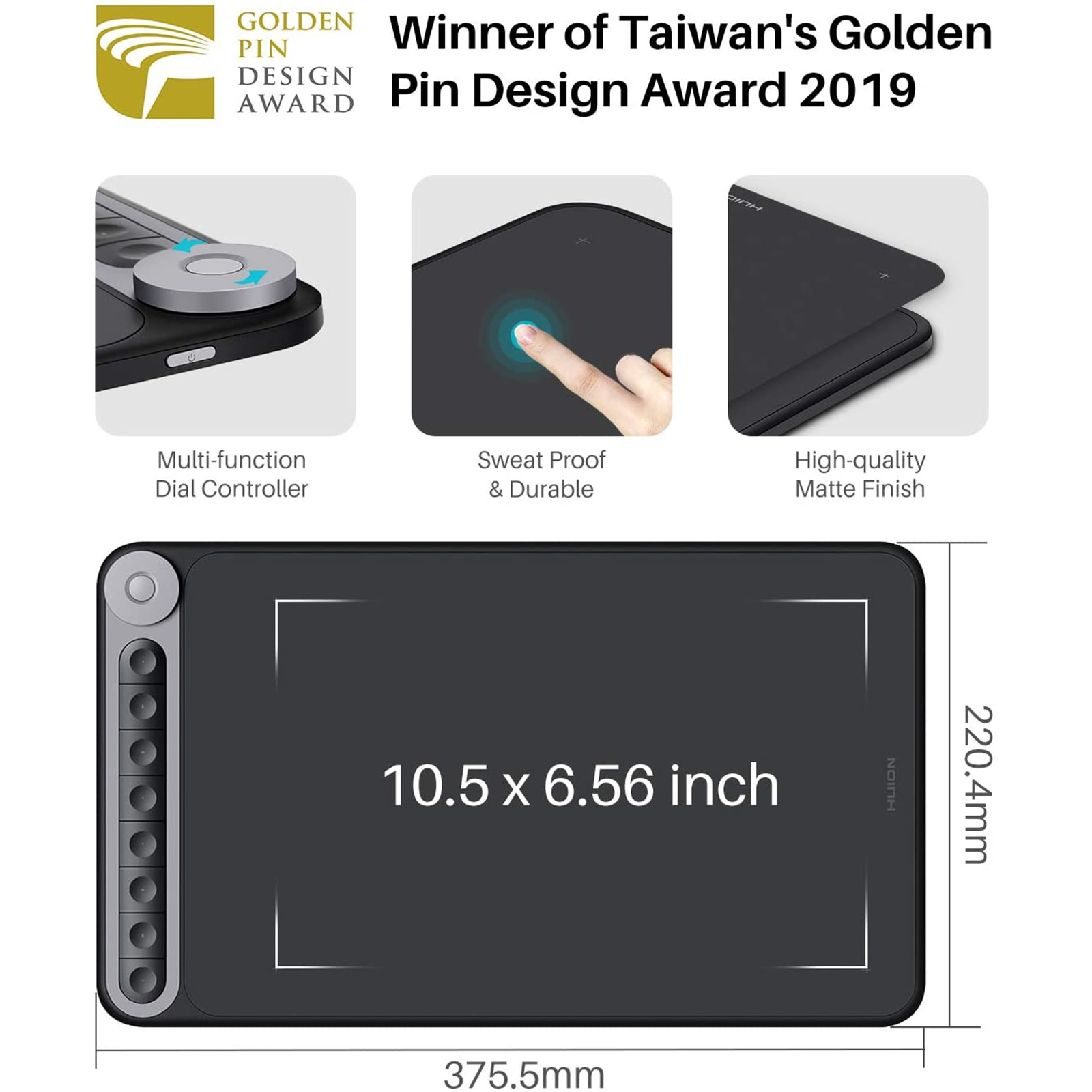 Made of superior ABS plastics and metal, Inspiroy Dial distinguishes itself with exclusive aesthetic design and exquisite workmanship. Besides, 10.5x6.5 inch active area ensures you a large canvas for expressing creativity.