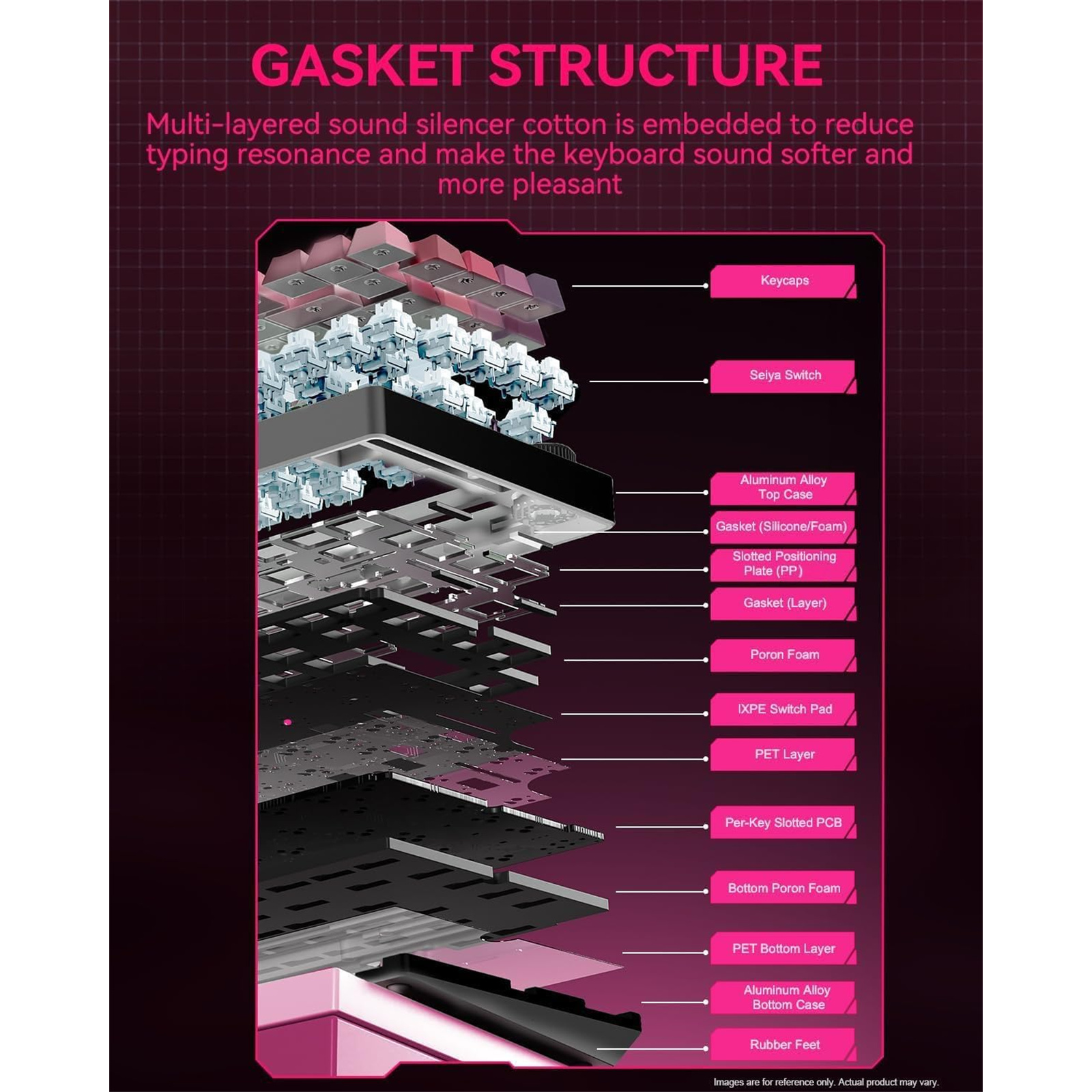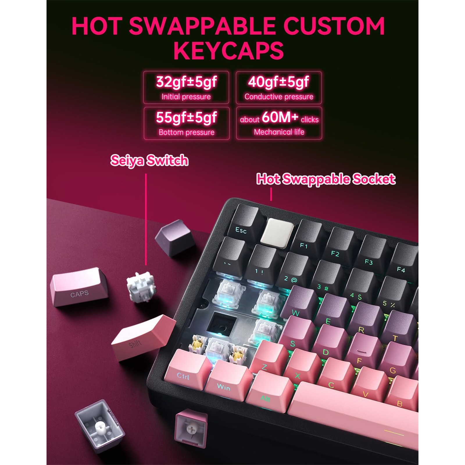 LEOBOG Hi75c PRO 75% Tri-mode Mechanical Keyboard - Black Pink Aluminium Alloy Cover - Seiya Linear Switch - RGB - Side-Prined PBT Keycaps - Hot Swappable - Gasket Mount