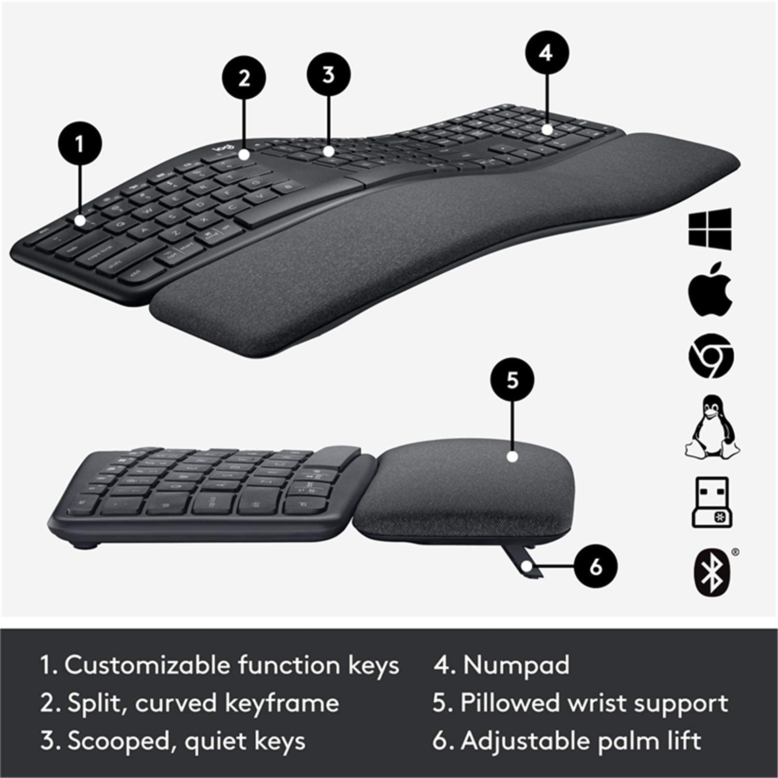 If you're a heavy spreadsheet user, you won't give up any important keys for a more ergonomic experience thanks to ERGO K860's full size layout with integrated numpad.
