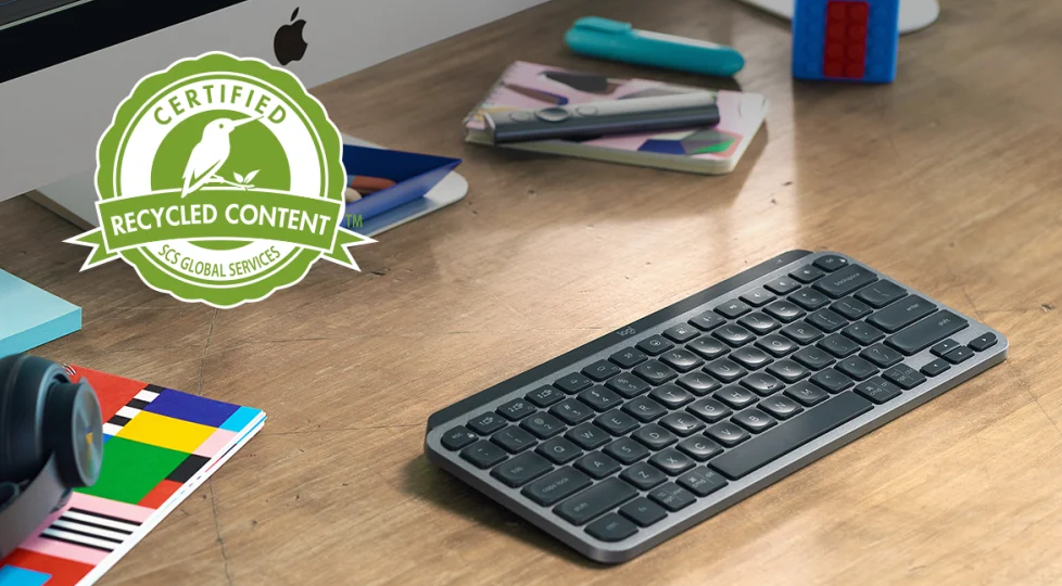 The plastic parts in MX Keys Mini for Business include post consumer recycled plastic-30% for Graphite and 12% for Pale Grey-to give a second life to end-of-life plastic from old consumer electronics and help reduce our carbon footprint.