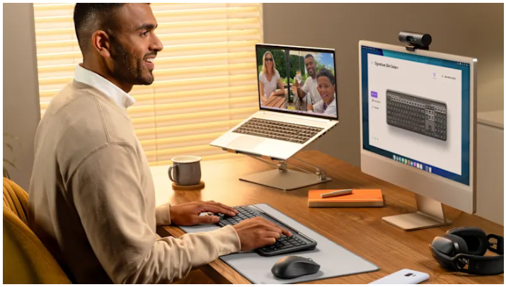 An extension of your clean, clutter-free workspace that supports up to three devices and lets you switch easily between them with Easy Switch; a truly wireless work set up.