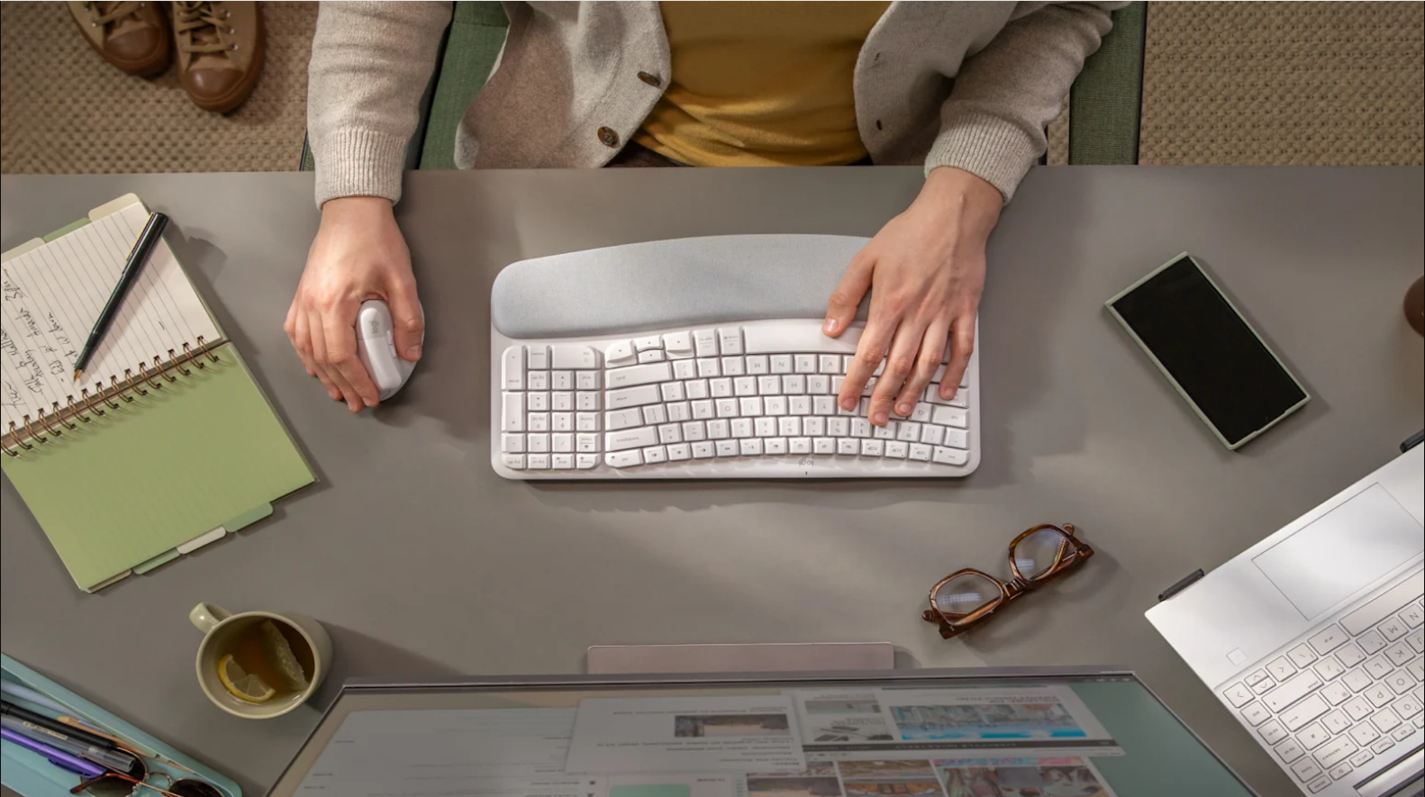 Get comfier with Wave Keys and Lift, designed for less pressure and improved wrist and forearm posture at the desk. Great fit for small to medium hands.
