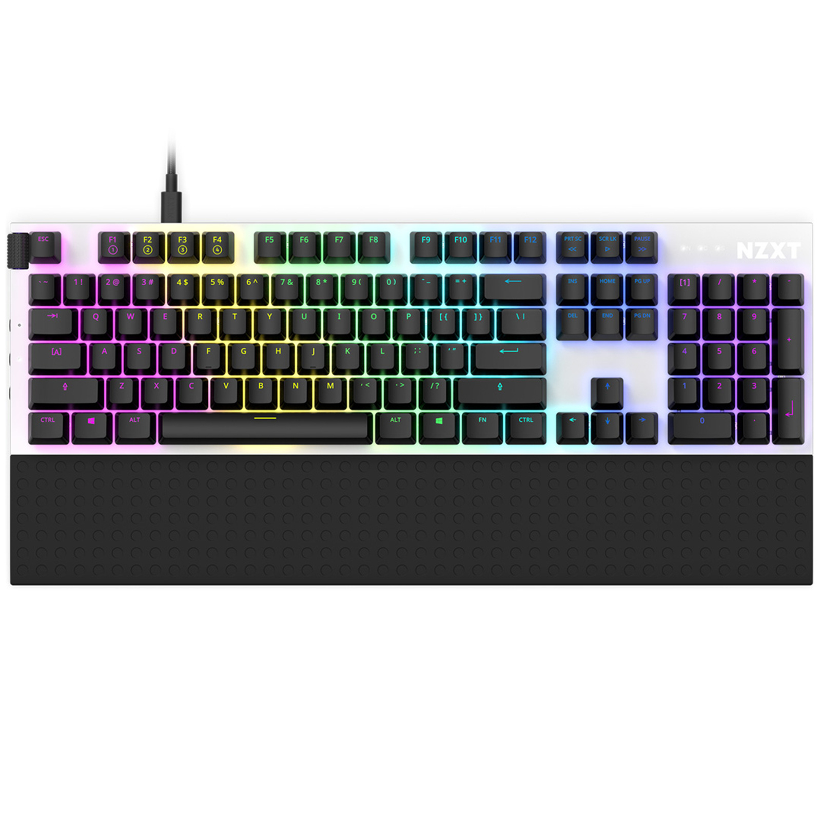 NZXT Full Size Mechanical Keyboard - White Gateron Red Switches, Volume Roller, Wrist Rest Included