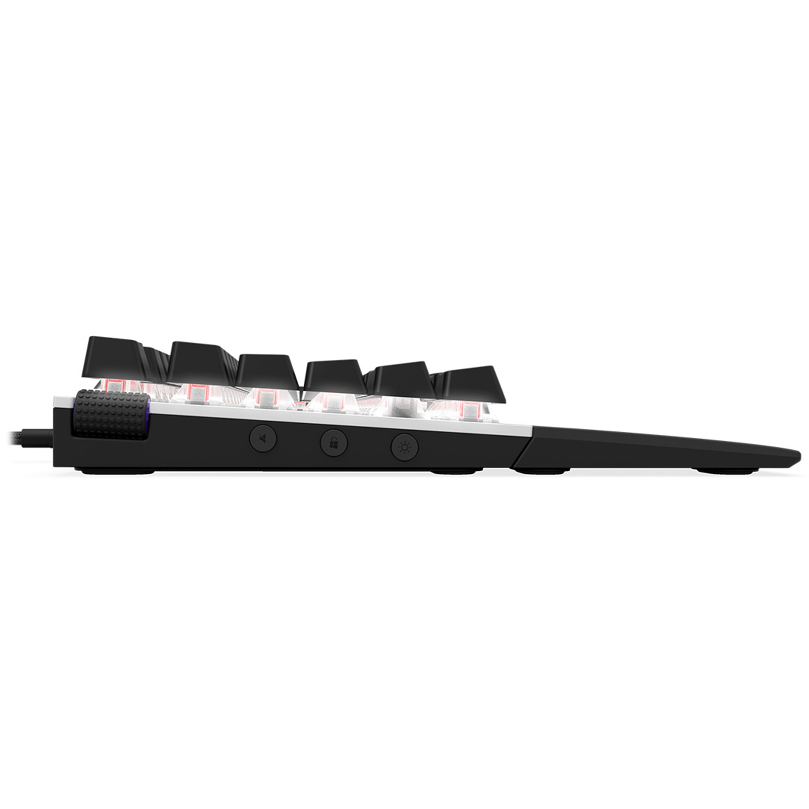 - Standard bottom row design enables installation of any standard aftermarket keycaps