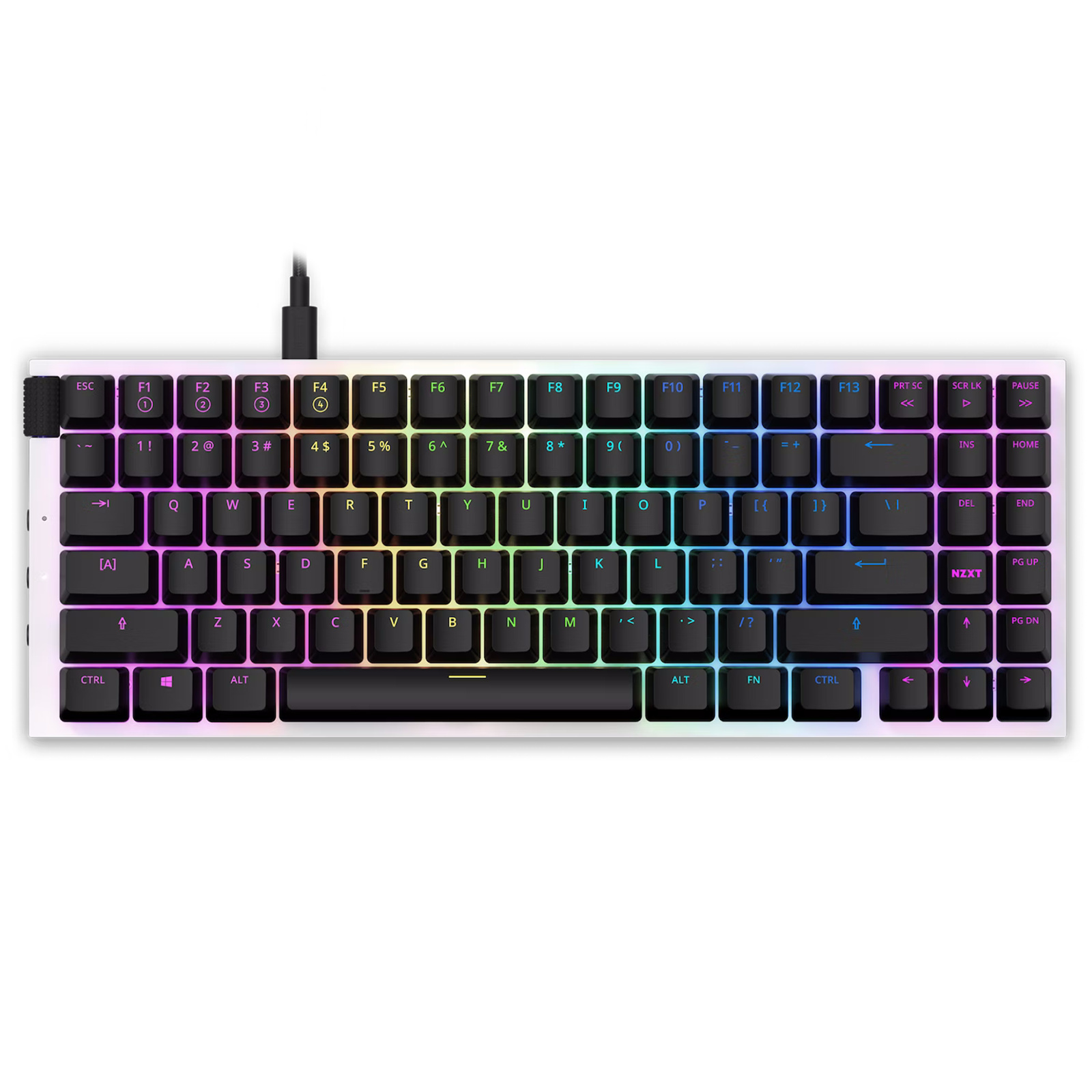NZXT MiniTKL Compact Mechanical Keyboard - White Colour Gateron Red Switches, RGB Lighting