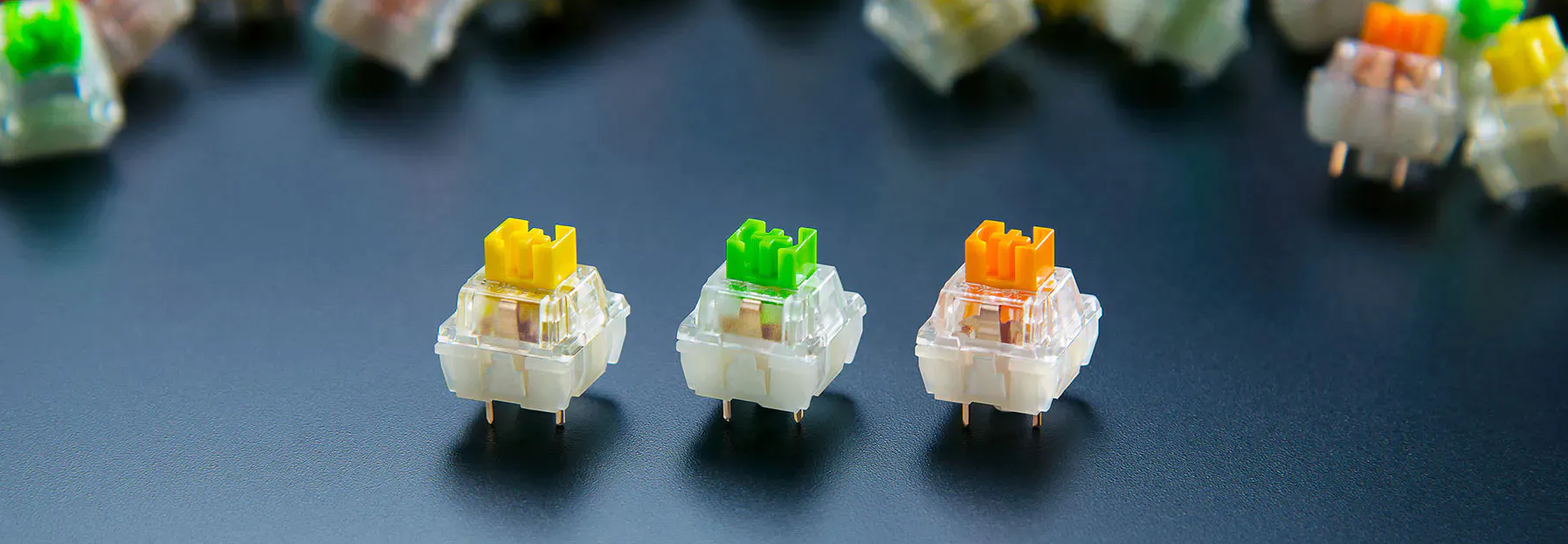 Choose between three switches that offer their own distinct feel. Go for the Green Switch for clicky, tactile feedback, the Orange Switch for quiet, tactile keystrokes, or the Yellow Switch for smooth, silent actuation.