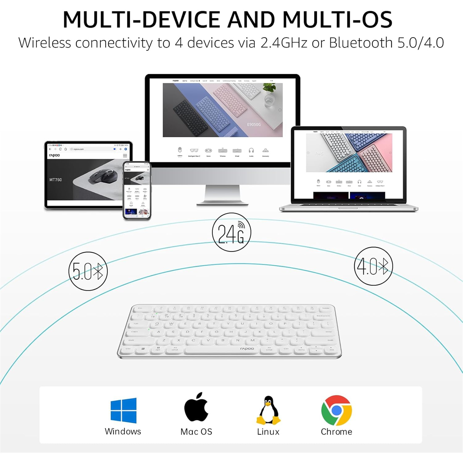 Multi-Device and Multi-OS Wireless: Seamless switching between 4 devices such as laptop, desktop computer, tablet or smartphone without hassle of swapping and reconnecting the keyboard back and forth.