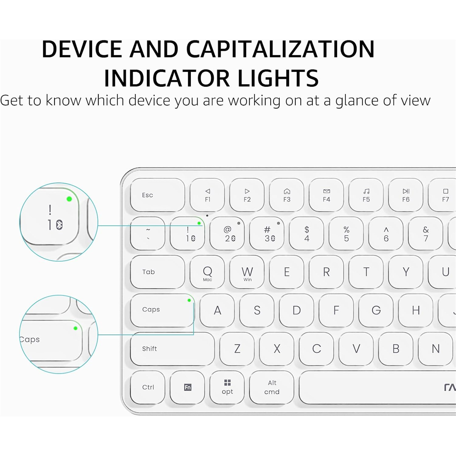 Refined Details from Customer Voice: The latest version has added device and capitalization indicator lights for making it easier to find which device you are typing on, and eliminating the inconvenience caused by not knowing the uppercase or lowercase; What's more, we've also added a battery indicator for better power management.