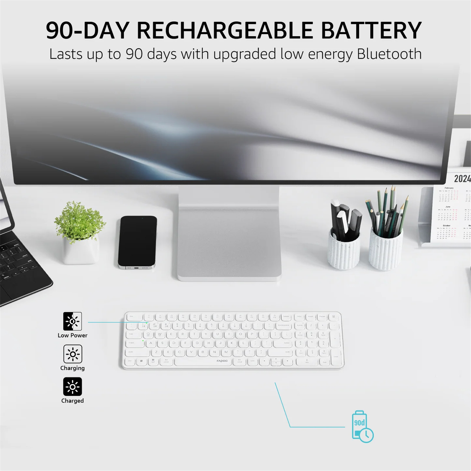 Rapoo E9350L Wireless Multi-Mode Ultra-Slim 99 Key Keyboard - White Bluetooth & 2.4g