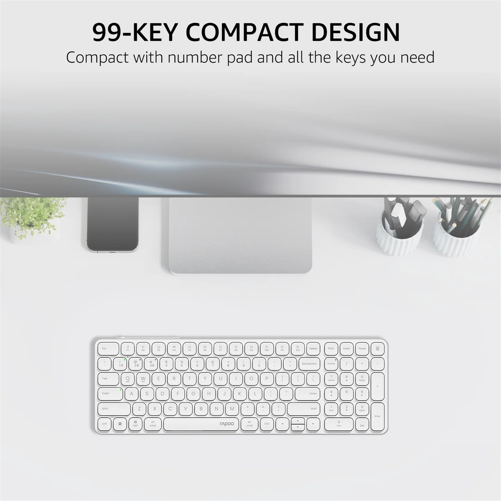 Rapoo E9350L Wireless Multi-mode Ultra-slim 99 Key Keyboard with Bluetooth and 2.4g White
