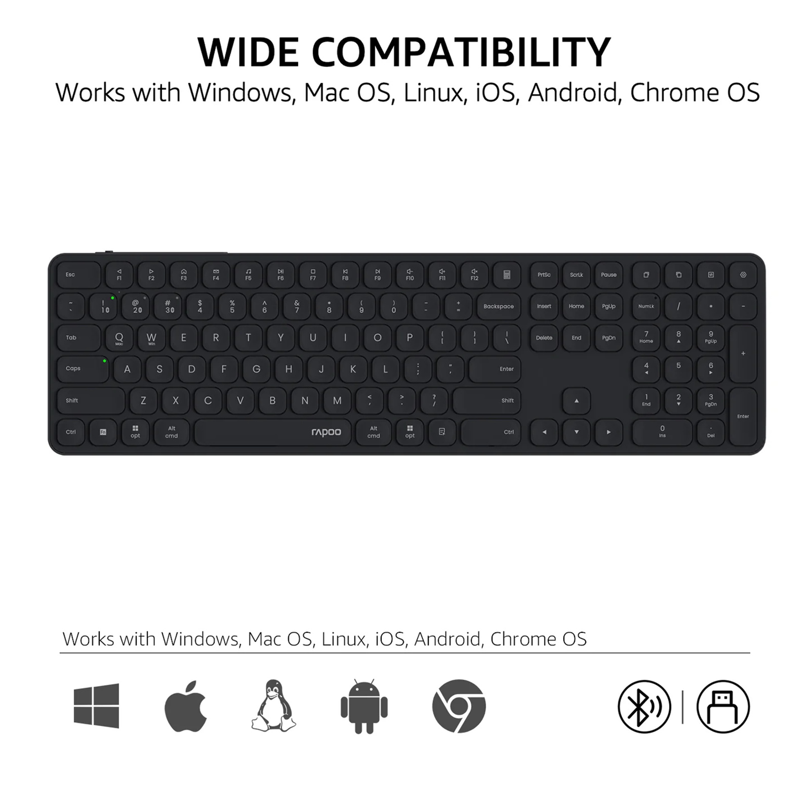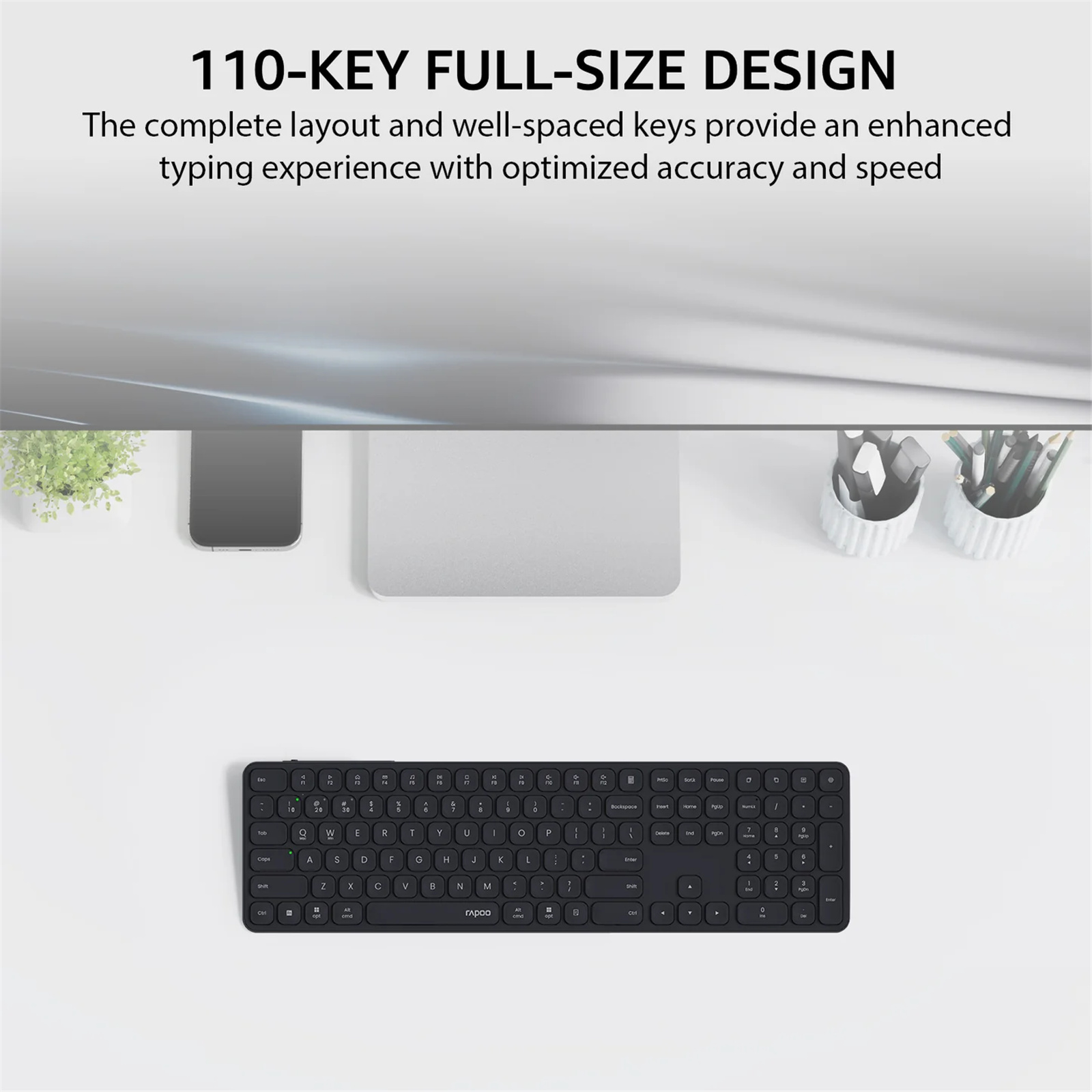 Rapoo E9550L Wireless Multi-mode Ultra-slim 110 Key Keyboard with Bluetooth and 2.4g Black