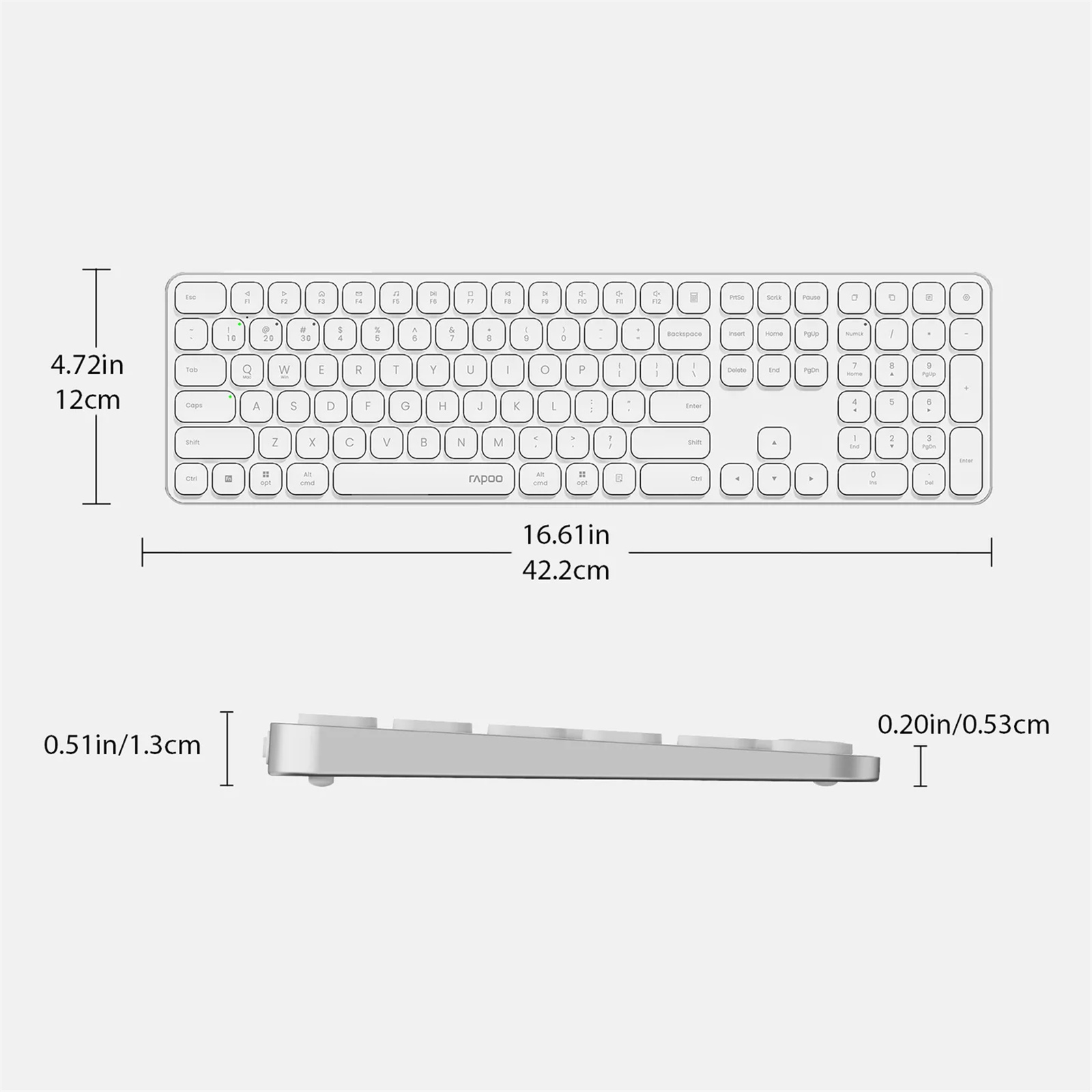 Quiet and Comfortable: Featuring RAPOO's classic blade-series ultra-thin design, E9550L delivers a fluid, precise and quiet typing experience at a natural angle for your wrist --- thanks to its 0.2-inch thickness that contributes less wrist strain, making extra palm rest no longer needed.