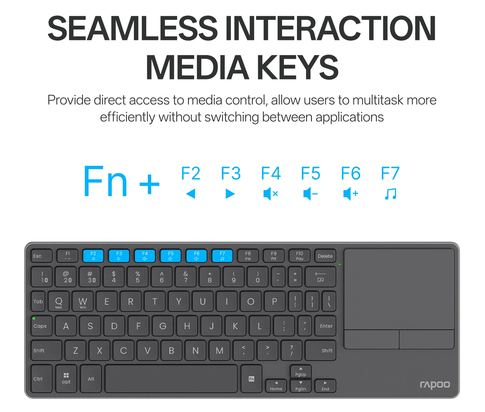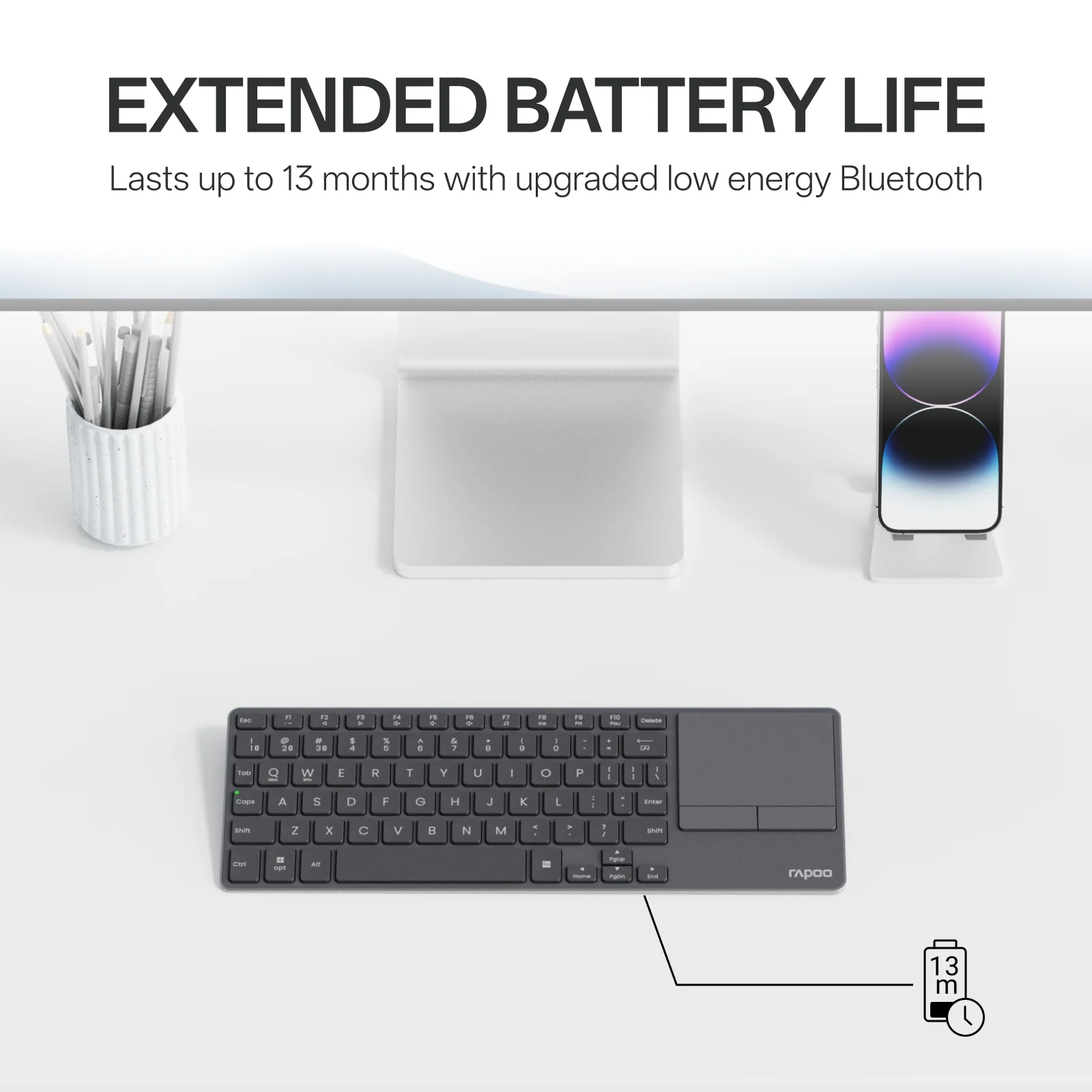 Product URL: https://www.pbtech.co.nz/product/KEYRPO1013/Rapoo-E900T-Wireless-TouchPad-Keyboard---Black-Blu