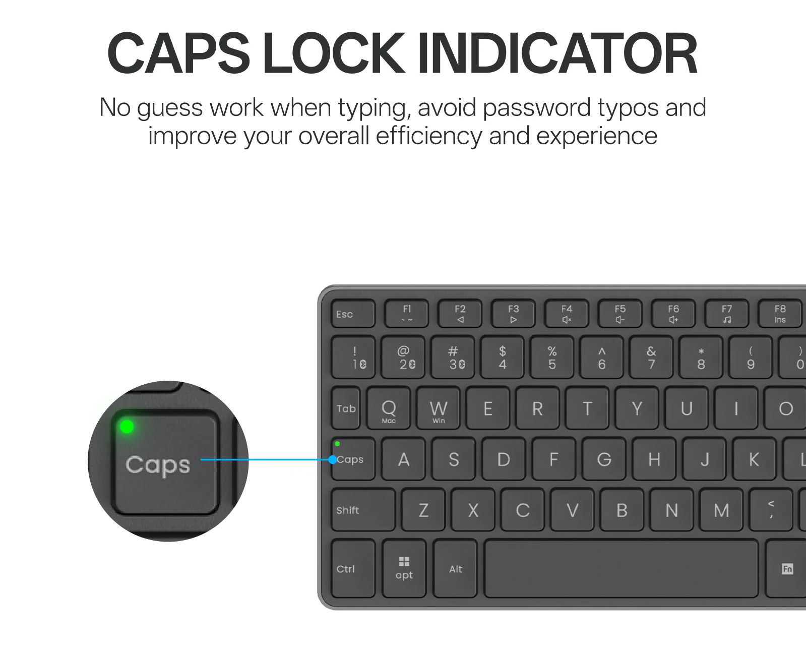 Just use the best pointing device that we are all born with, no need to take a mouse all around, this keyboard supports multi-finger gestures for both Windows and Mac OS [Note: Press FN+W to enter Windows mode / FN+Q to enter Mac mode].