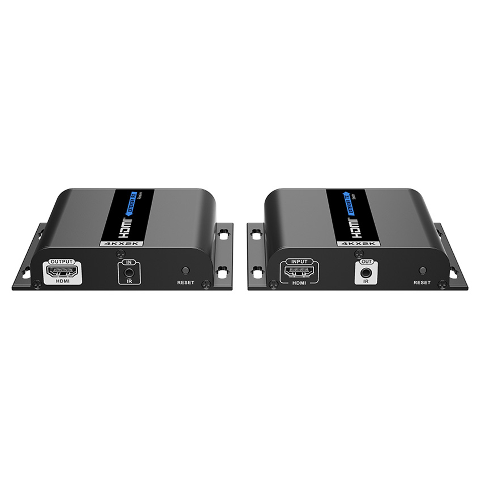 HDMI extender, extend your HDMI video/audio with the resolution of 4K×2K@30Hz up to 120m(394 feet) via CAT6 network cable. Supports IR passback, to control media playback of the signal source device at the display location.