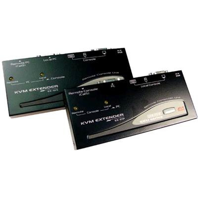 REXTRON Console Extender Allows VGA mouse & keyboard signals to be ext. up to 150 metres using CAT5 UTP/STP Cable. USB console ports on units, supplied with 2-to-1 USB/ VGA 1.8M cables. Black Colour.